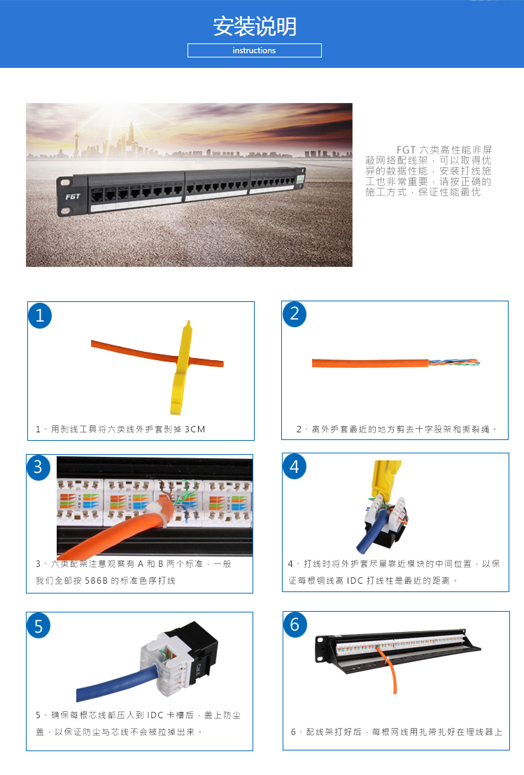 經典穩定快速 FGT-24P-6L-K 24口六類模塊式非屏蔽網絡配線架